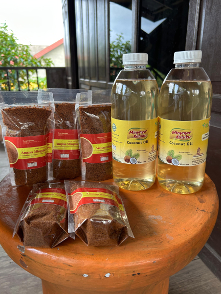 Minyak kelapa terbuat dari kelapa tua segar pilihan yang dimasak lama dan tanpa pengawet ataupun pewarna buatan