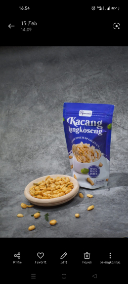 Kacang langkoseng adalah cemilan khas yg enak gurih dan renyah .perpaduan antara daun jeruk dan bawang putih menghasilkan rasa yg unik