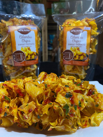 Produk olahan dari ubi cilembu yang di buat menjadi keremes dan keripik dengan berbagai varian rasa