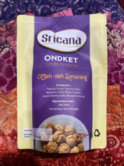 Onde Ketawa Sricana adalah camilan tradisional berbentuk bulat, bertekstur renyah, manis, dan bertabur wijen, cocok dinikmati kapan saja.