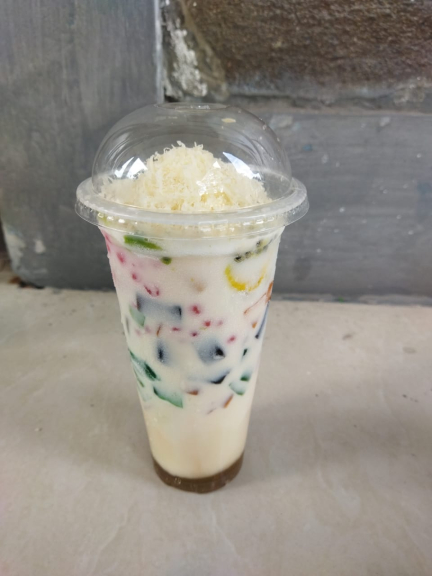 Es teler dengan kuah creamy dilengkapi dengan parutan keju yang melimpah