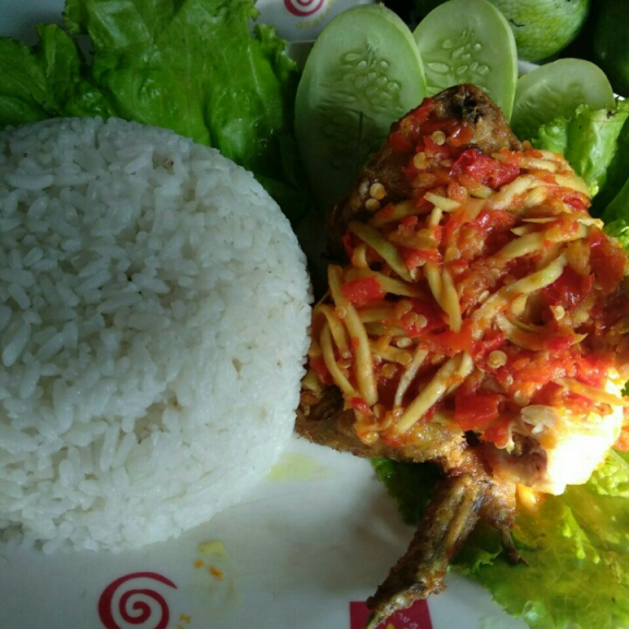 Ayam goreng krispi disajikan dengan saus mangga segar pedas manis yang menyegarkan.