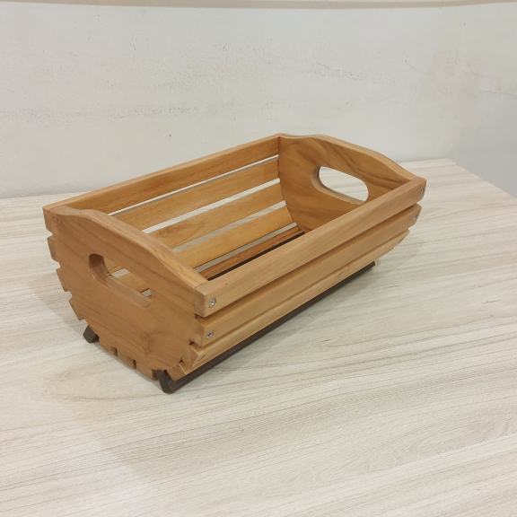 Wooden basket adalah wadah kayu ramah lingkungan yang multifungsi. Material dari limbah kayu jati pilihan, dengan finishing water ba