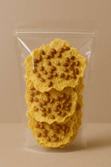 Rempeyek renyah khas rumahan, dibuat dari bahan alami tanpa pengawet, cocok sebagai camilan atau pelengkap makanan