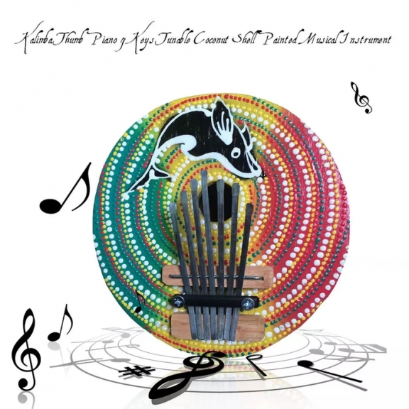 Alat musik kalimba. Bisa dijadikan alat musik edukasi. Nada acak, diatur dari panjang pendeknya kawat. Bisa disetel. Bisa dipakai juga untuk relaksasi musik, dan teater atau opera. Material: Batok kelapa (coconut fruit). Hiasan painting Acrilic.