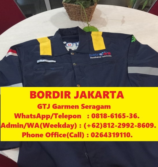 Bordir Jakarta adalah Salah Satu Produk Bordir Jakarta CVGTJ Uniform Garment, merupakan pusat jasa konveksi bordir jakarta murah. Vendor Konveksi atau Kantor Tempat Pembuatan- Bikin Bordir Jakarta dengan jasa penjahit berpengalaman 30 tahun-CVGTJ