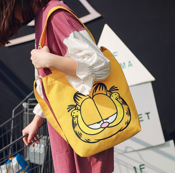 tas kanvas selempang kuning garfield vintage ala korea design st