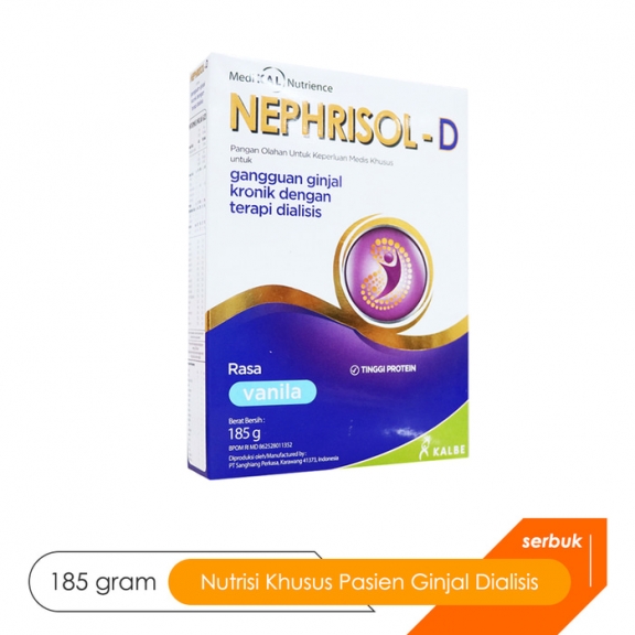 Nephrisol-D adalah nutrisi khusus bagi pasien gagal ginjal dengan tahap Dialisis/CAPD. Selain membuang zat yang tidak perlu pada saat HD, HD juga membuang sebagian protein dan zat penting tubuh lainnya. Dengan menggantinya dengan Nephrisol-D, dimaksudkan agar tetap menjaga keseimbangan mikronutrien juga makronutriennya terutama protein.