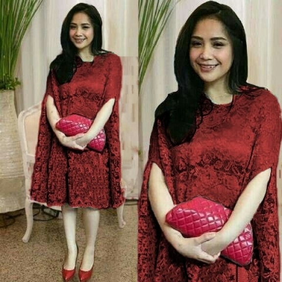 KAFTAN NAGITA MAROON BAHAN BRUKAT LAPIS FURING, ALLSIZE FIT XL LD.FURING100 LDBRUKAT180 PJ95