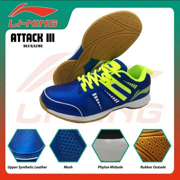 Sepatu Badminton ORIGINAL LINING ATTACK GEN 3 Material Upper : Synthetic Leather + Mesh Rubber Outsole + Phylon Midsole ukuran : 34 sd 44 Original Produk Mohon Tanyakan Stok Terlebih Dahulu Sebelum Order