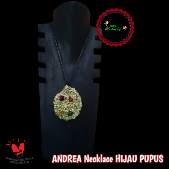 Kalung etnik dan Unik yang di buat dari kawat alumunium di padukan dengan batu agate Dimensi : 7cm x 4cm Panjang kalung saat di pakai 40 cm Maksimal 45 cm NOTE : Warna aslinya HIJAU agak KEKUNINGAN