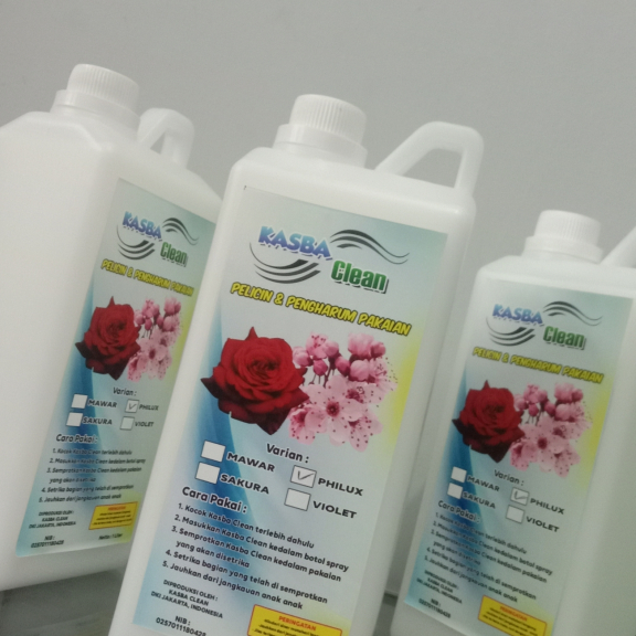Pelicin dan pewangi pakaian setrika kemasan botol 1 liter.