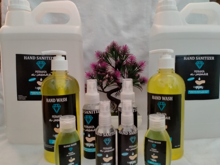 Produk rumah tangga berupa sabun cuci tangan, hand sanitizer