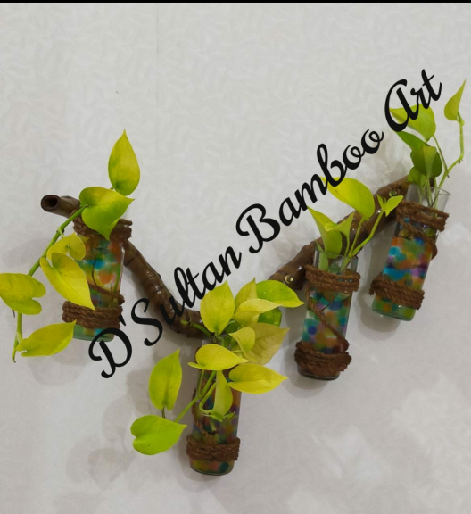 Pot kaca set dinding terdiri dari braket/pegangan bambu dan 3 set pot kaca hasil pengolahan limbah botol, tidak termasuk tanaman dan waktu pengerjaan Maksimum 5 hari, Open PO