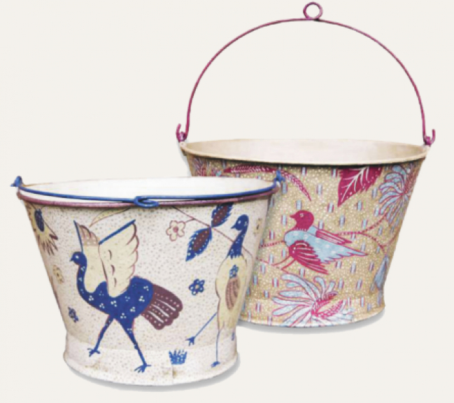 fungsi; tempat pensil, penyimpan pernik, atau media tanam cantik. Mengambil pola batik Banyumasan yang populer pada 1960-an, Kenongo Pot menyajikan aneka gambar flora dan fauna yang mengisahkan kekayaan hayati Pulau Jawa. Tarikan garis tergas dan lugas serya motif geometris menjadi cirinya. Demikian pula dengan warna tua kecokelatan dan hitam yang dominan. Lebih dari sekadar hiasan. Pot Kenongo adalah upaya melestarikan budaya Indonesia.