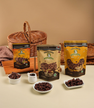Cangcomak ada 3 varian Kacang Tanah, Kacang Mede dan Almond semuanya di coating coklat. Kami bukan hanya menyajikan makanan ringan, tapi juga sebuah pengalaman yang membangkitkan kenangan manis dari masa kecil. Produk kami unik karena proses panggangnya, menjadikannya rendah minyak, tidak lengket, dan renyah.