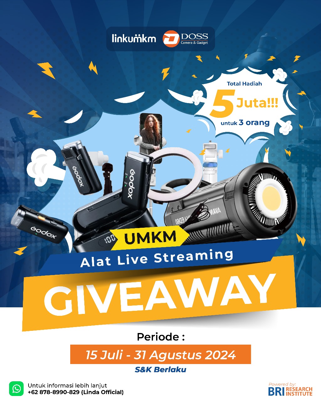 Untuk mendukung UMKM dalam meningkatkan kualitas live streaming, LinkUMKM dan DOSS Camera & Gadget mengadakan Giveaway Alat Live Streaming senilai total 5 Juta Rupiah untuk 3 orang pemenang! ![]()