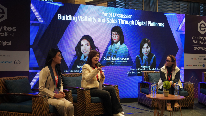 Diskusi panel bertajuk “Building Visibility and Sales Through Digital Platforms” menghadirkan figur-figur inspiratif perempuan Indonesia, diantaranya: Nilam Sari (Founder Kebab Turki Baba Rafi & CEO PT Nava Sari Kreasi), Dewi Meisari Haryanti (Co-Founder ukmindonesia.id & Founder tumbu.co.id), dan Zahra Amalina (CEO Tetra Jaya Plusindo & Miss Indonesia Jawa Barat 2016). Ketiganya menggarisbawahi pentingnya membangun visibilitas, kredibilitas, dan kepercayaan konsumen melalui strategi digital yang otentik dan berorientasi pada nilai. Mereka menegaskan bahwa keunggulan UMKM tidak hanya terletak pada produk, tetapi juga pada kemampuan adaptif dan kekuatan narasi yang menghubungkan merek dengan pelanggan.