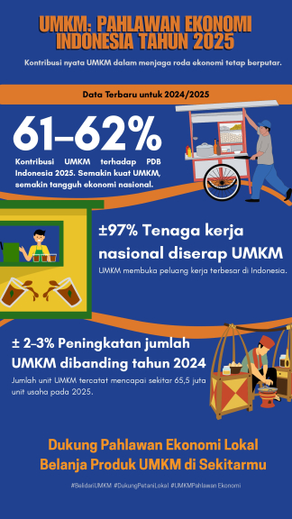 Dengan kapasitas yang besar, kontribusi nyata pada PDB, dan serapan tenaga kerja yang dominan, UMKM layak disebut sebagai “pahlawan ekonomi modern”. Dukungan masyarakat dalam memilih produk lokal menjadi bagian penting untuk menjaga keberlanjutan sektor ini dan memperkuat fondasi ekonomi Indonesia ke depan.