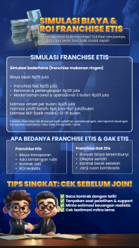 Franchise etis makin diminati UMKM karena jelas legalitasnya, transparan soal risiko, serta memberi pelatihan dan pendampingan, sehingga lebih aman dan berkelanjutan
