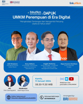 BRI Research Institute Mengadakan Webinar Online dengan Topik “Menghadapi Tantangan dan Mengambil Peluang Usaha di Tahun 2024” pada Webinar LinkUMKM Outlook 2024.
