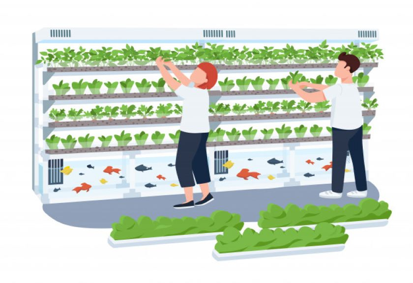 Merupakan sistem pertanian yang mengombinasikan hidroponik dan akuakultur atau budidaya perikanan. Terdapat tiga komponen biologis dalam penerapan aquaponik, yaitu ikan, tanaman, dan bakteri.