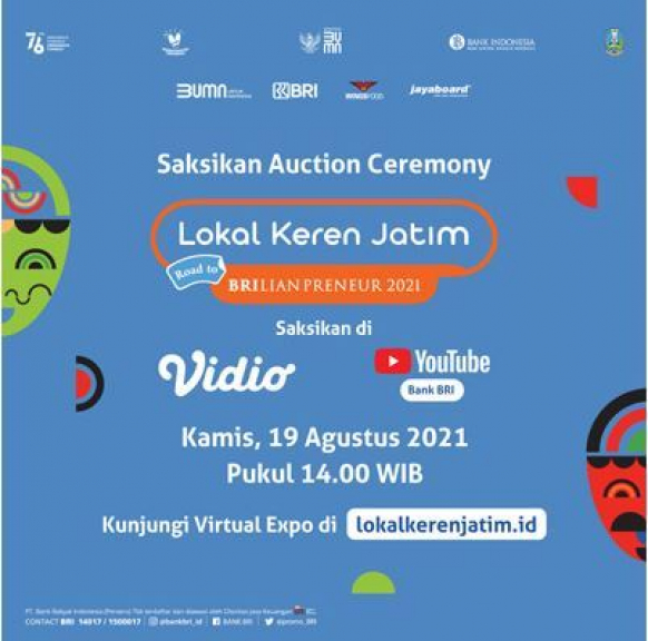 LINK UMKM - Jakarta (07/08) – Pameran virtual industri kreatif UMKM “Lokal Keren Jatim Road to BRILianpreneur” yang digelar PT Bank Rakyat Indonesia (Persero) Tbk atau BRI resmi dibuka. Event virtual yang dapat diakses pada https://lokalkerenjatim.id/ ini diikuti oleh sebanyak 251 UMKM terpilih dan event ini menjadi rangkaian agenda BRILianpreneur 2021, sebagai wujud nyata BRI mendorong bangkitnya UMKM di Indonesia dan untuk mendukung Gerakan Nasional Bangga Buatan Indonesia.