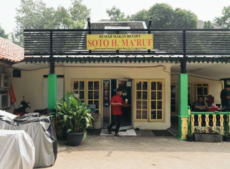 Buah usahanya itu terlihat. Rumah Makan Soto Betawi Haji Ma&039;ruf yang ada di Taman Ismail Marzuki selalu ramai dipenuhi pelanggan setia.