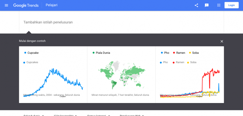 Berikut cara menggunakan Google Trends untuk menentukan fitur produk yang cenderung ditelusuri oleh target audiens di Indonesia: