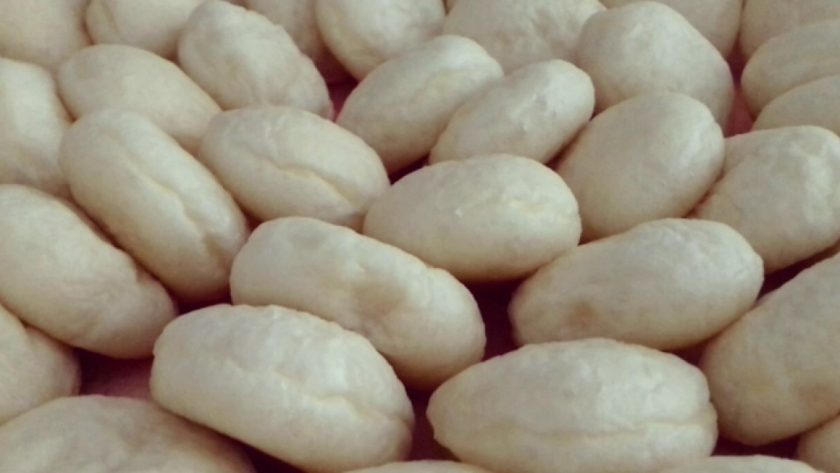 - Pipihkan adonan, kemudian bagi adonan menjadi 8 atau 9 buah(sekitar 60 gram>Sesuai selera untuk ukurannya)