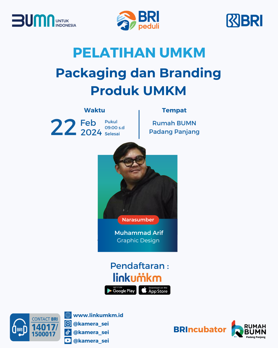 Rumah BUMN Padang Panjang mengadakan Pelatihan Packaging dan Branding Produk UMKM. Menghadirkan pakar dibidangnya demi kemajuan UMKM Indonesia.