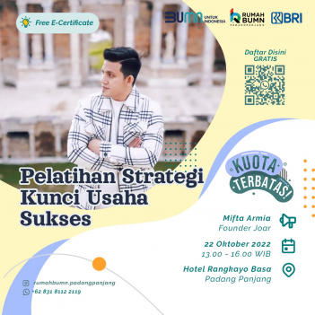 Rumah BUMN Padang Panjang mengadakan Pelatihan "PELATIHAN STRATEGI KUNCI USAHA SUKSES". Menghadirkan pakar dibidangnya demi kemajuan UMKM Indonesia.