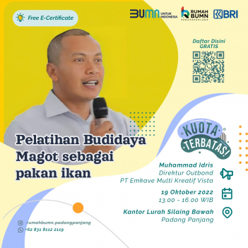 Rumah BUMN Padang Panjang mengadakan Pelatihan "Pelatihan Budidaya Magot Sebagai Pakan Ikan". Menghadirkan pakar dibidangnya demi kemajuan UMKM Indonesia.