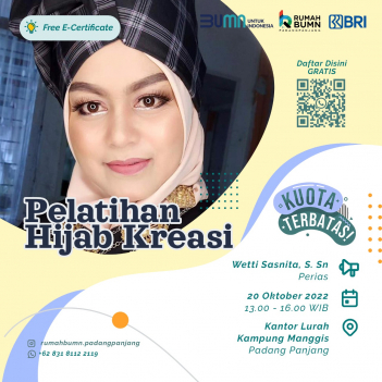 Rumah BUMN Padang Panjang mengadakan Pelatihan "HIJAB KREASI". Menghadirkan pakar dibidangnya demi kemajuan UMKM Indonesia.