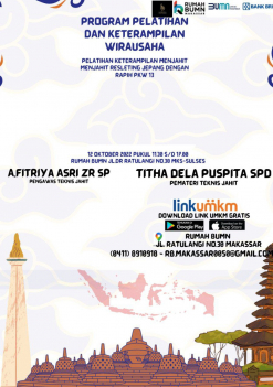 Rumah BUMN Makassar Berkolaborasi dengan Komunitas Dress Maker dan mikromentor chapter makassar akan melangsungkan kegiatan Pelatihan dengan tema "TEKNIK MENJAHIT RESLITING JEPANG DENGAN RAPI (KELAS TEKNIS PKW 13)". Diharapkan output pelatihan ini akan meningkatkan skill/keterampilan agar dapat membantu meningkatkan kesejahteraan rumah tangga.