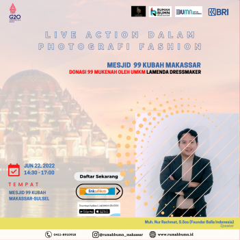 Fotografi fashion adalah genre fotografi yang ditujukan untuk menampilkan pakaian dan barang-barang fashion lainnya. Pada umumnya fotografi fashion akan berfokus pada pakaian atau aksesoris yang dikenakan model, para fotografer juga cenderung menggunakan pencahayaan yang dramatis. pelatitihan tersebut langsung praktek di pakarangan mesjid 99 kubah makassar dirangkaikan dengan infaq 99 mukenah dari hasil output pelatihan umkm. diharapkan dapat membantu umkm dalam menampilkan karya di dunia digital untuk meningkatkan pemasaran umkm sehingga penjualan umkm meningkat pula.