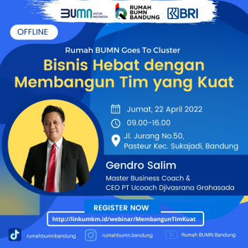 Yuk ikutan workshopnya dengan tema "Bisnis Hebat dengan Membangun Tim yang Kuat” bersama Pak Gendro Salim.