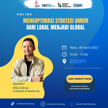 Kali ini Rumah BUMN ngadain Webinar yang bertemakan "Mengoptimasi Strategi UMKM Dari Lokal Menjadi Global" lho, yuk ikutan!