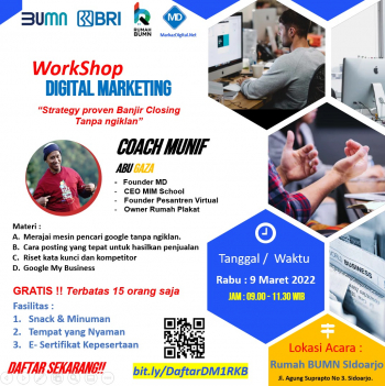 Yuk ikuti, kelas offline Rumah BUMN Daerah Istimewa Yogyakarta dan pastinya akan sangat bermanfaat untuk kita semua serta manakah strategi pemasaran yang tepat untuk kita gunakan dalam usaha kita.
