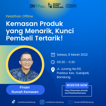 Sebuah produk bisa menarik pelangan dengan pandangan pertama yaitu sebuah kemasan yang cantik, elegan dan sesuai dengan kaidah labelisasi kemasan. Ingin belajar mengenai kemasan produk secara lebih mendalam untuk kemajuan bisnismu? Ikuti pelatihannya di Rumah BUMN Bandung dengan tema “Kemasan Produk Yang Menarik, Kunci Pembeli Tertarik”