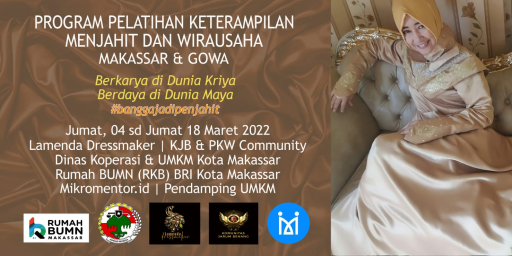 Rumah BUMN Makassar Berkolaborasi dengan Komunitas Jarum Benang akan melangsungkan kegiatan pelatihan jahit menjahit dan wirausaha di kota makassar. Diharapkan output pelatihan ini akan meningkatkan skill/keterampilan agar dapat membantu meningkatkan kesejahteraan rumah tangga.