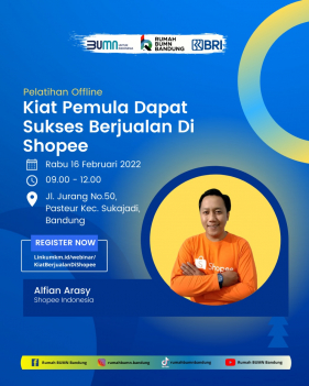 Lagi bingung karena penjualan disitu-situ aja Sini, mimin kasih tau caranya. Yuk ikutan workshopnya dengan tema ”Kiat Pemula Dapat Sukses Berjualan Di Shopee” bersama kak Alfian Arasy perwakilan dari Shopee Indonesia. Lewat workshop ini, kak Alfian akan membahas seputar Permulaan berjualan di shopee