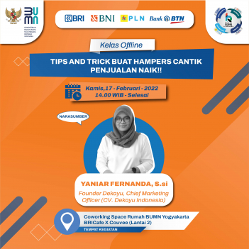 3. Bagaimana cara pengelolaan keuangan sederhana.Melalui webinar ini, diharapkan sobat UMKM dapat terbantu dan mendapatkan wawasan baru, khususnya dapat membantu sobat UMKM dalam mengembangkan usahanya terutama dalam hal keuangan. Yuk catat tanggalnya!