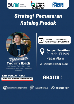 Rumah BUMN Pagar Alam mengadakan pelatihan " Strategi Pemasaran: Katalog Produk" secara offline di Rumah BUMN Pagar Alam.