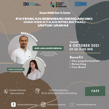 Webinar RUMAH BUMN Bandung Goes to Cluster-Lindungi danPatenkan Bisnismu! HKI (Hak Kelayakan Intelektual) untuk UMKM