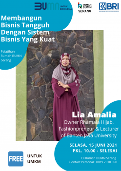Pemateri : Lia Amalia (Owner Rhamala Hijab, Fashionpreneur, Lecturer of Banten Jaya University)