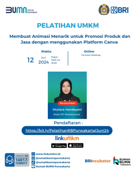 Sobat UMKM, Rumah BUMN Purwakarta mengadakan Pelatihan Secara Online.