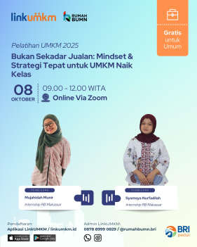 Tema Pelatihan: Bukan Jekadar Jualan : Mindset & Strategi Tepat Untuk UMKM Naik kelas