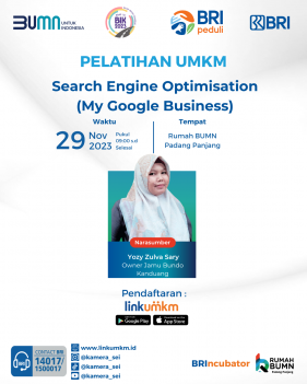 Rumah BUMN Padang Panjang mengadakan Pelatihan Search Engine Optimisation My Google Business. Menghadirkan pakar dibidangnya demi kemajuan UMKM Indonesia.