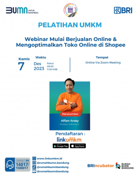 Nah kalian WAJIB banget nih ikut pelatihan yang akan dilaksanakan oleh Rumah BUMN Bandung bersama Shopee. Tema webinarnnya yaitu Webinar Mulai Berjualan Online dan Mengoptimalkan Toko Online di Shopee pas banget nih buat ngebantu kalian makin sukses jualan di Shopee